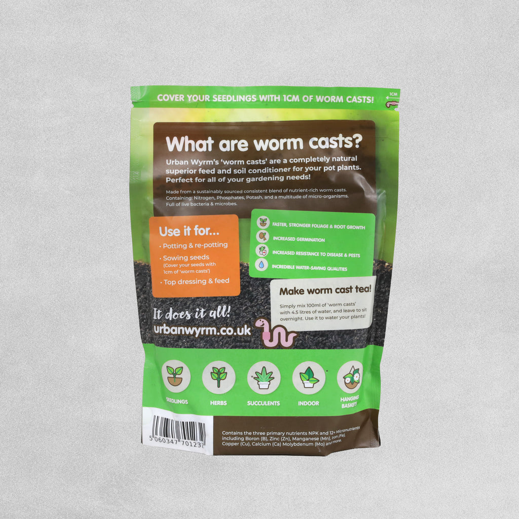 Made from a sustainably sourced consistent blend of nutrient-rich worm casts. Containing: Nitrogen, Phosphates, Potash and a multitude of micro-organisms. Full of live bacteria & microbes.
