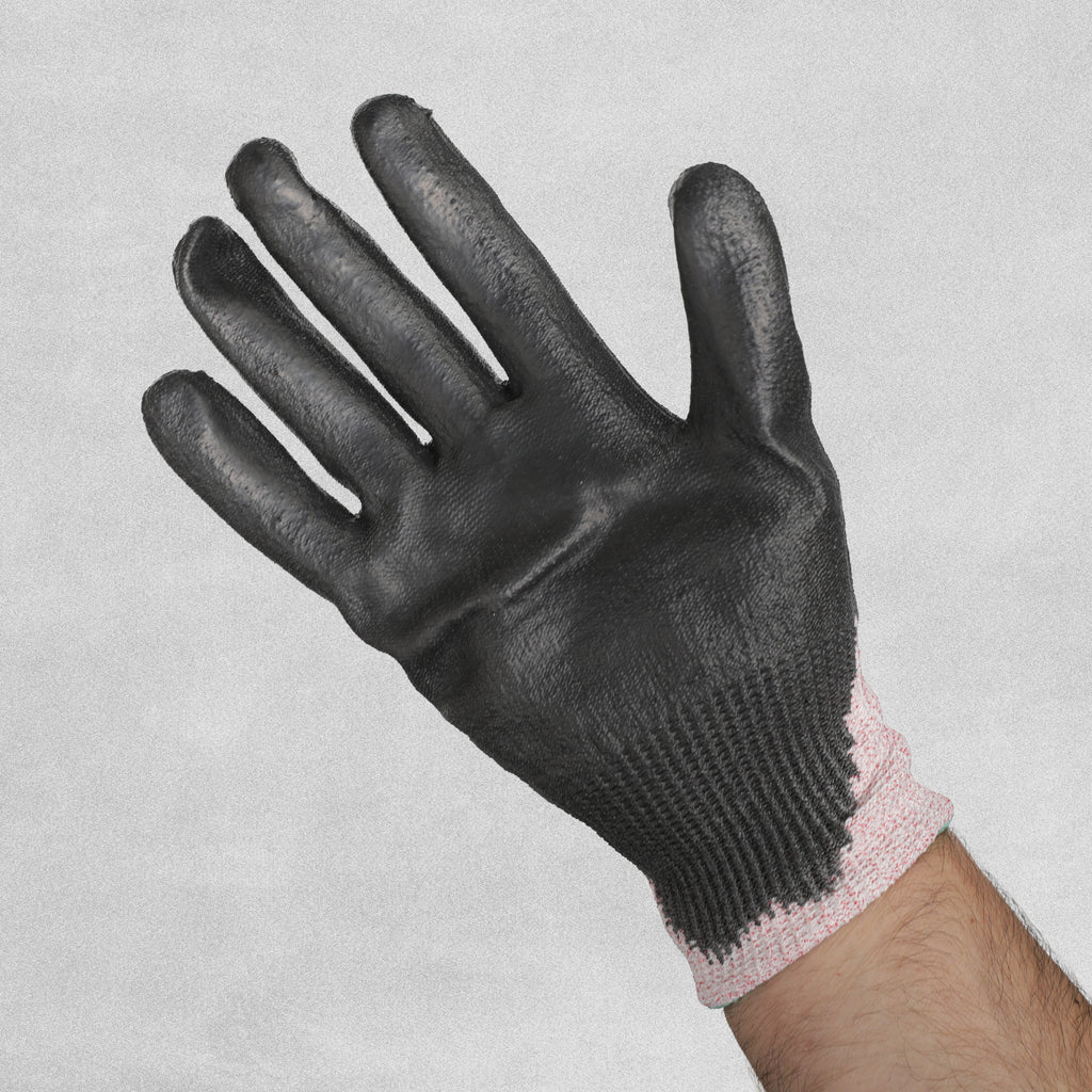 Protection gloves with a cut resistance of level 3, which provides moderate protection against cuts and abrasions, suitable for tasks like handling sheet metal, glass, or pipes.