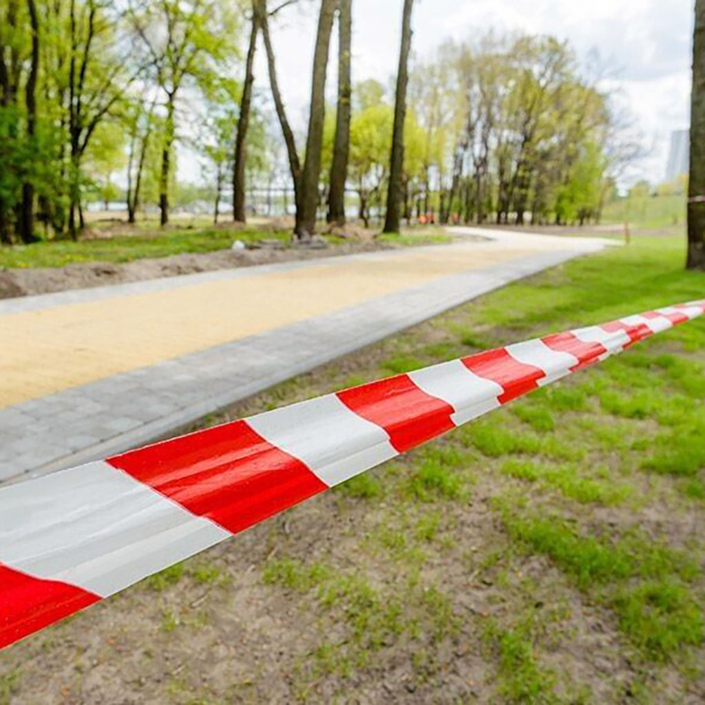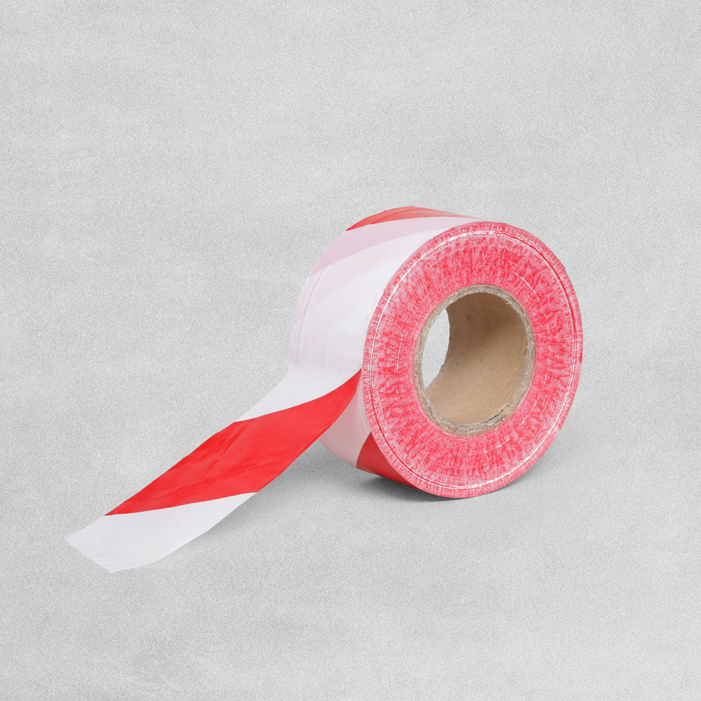 - Diagonally striped hazard warning tape used to mark out areas and avoid hazards.